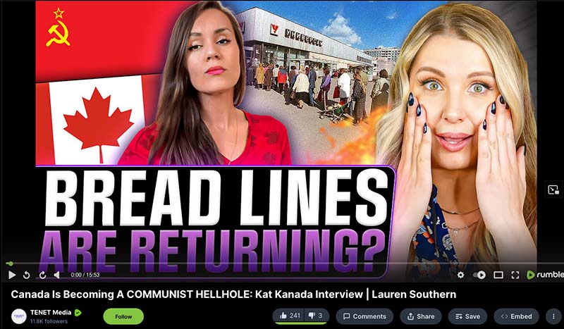 Screenshot of a Tenet Media video posted to Rumble targeting Canada.